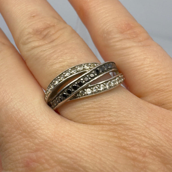 Bague argent croisée strass