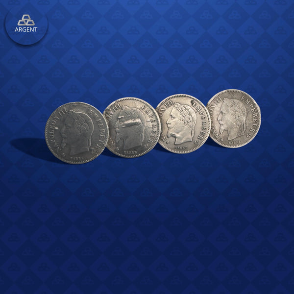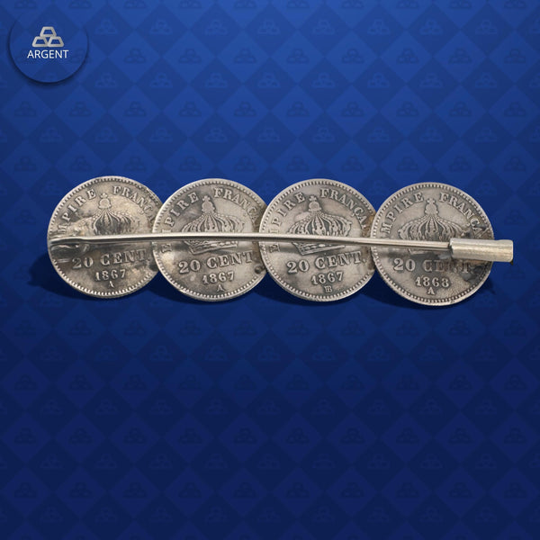 Broche argent 835 ‰ 20 Centimes Napoléon III Tête Laurée x4