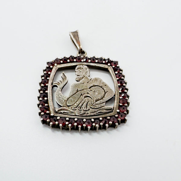 Pendentif argent 925 verseau pierre rouge