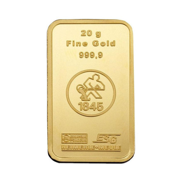 Heimerle Meule, fondée en 1845 et basée à Pforzheim, est certifiée par la London Bullion Market Association (LBMA). En tant que l'un des plus anciens fondeurs/affineurs de métaux précieux d'Allemagne, elle est leader sur le marché des métaux précieux et garantit une qualité sérieuse. Le lingotin 20 grammes est l'un des produits phares pour tous les investisseurs. Il mesure 31 x 18 x 2.1mm, pour une pureté de 999,9‰ d’or pur.