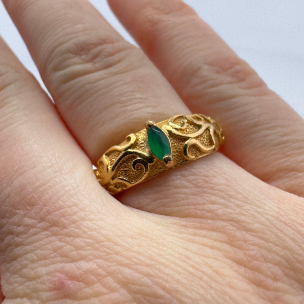 Bague orientale pierre verte plaqué or