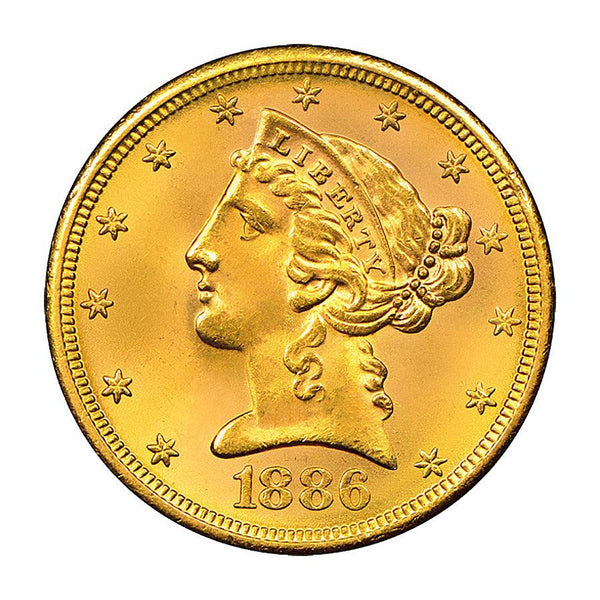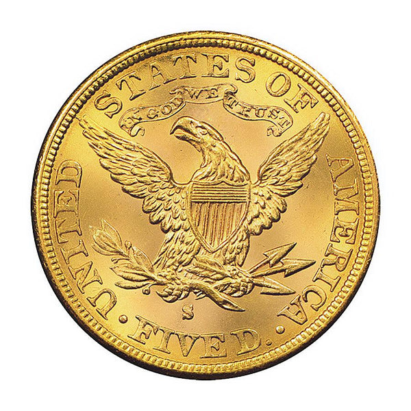 La pièce d'or 5 Dollars US est la plus ancienne pièce d'or à être frappée en Amérique et mise sur le marché. Elle est connue sous le nom de "half eagle" et est l'une des rares pièces à avoir été produite dans tous les ateliers de frappe des États-Unis. Cette pièce en or a été frappée de 1839 à 1908 et est aujourd'hui considérée comme l'une des plus populaires pièces d'or de l'histoire américaine. Ses homologues, la pièce 20 Dollars US "double eagle" et la pièce en or 10 Dollars US "Gold Eagle", sont également très populaire depuis leur introduction en 1849.