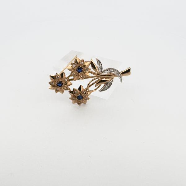 Broche plaqué or fleurs